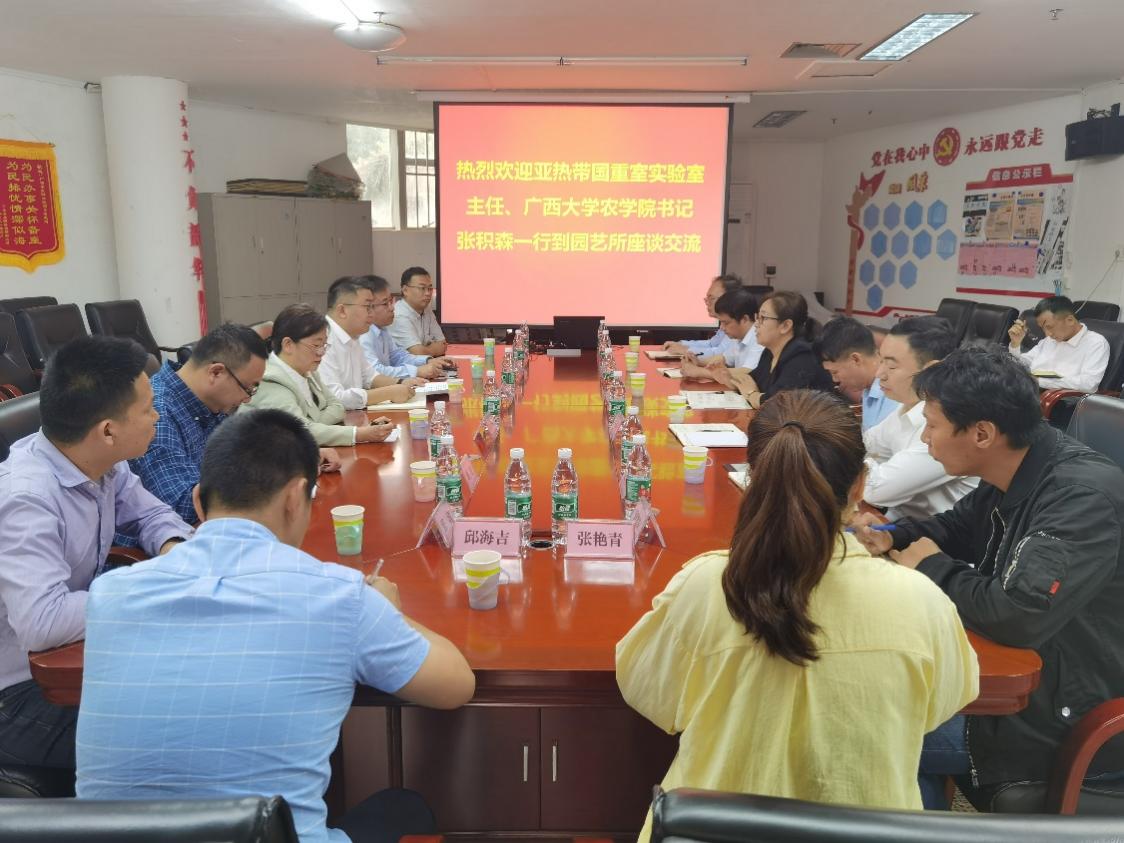 为加强院所间科研组织化合作,推动学科建设和发展,3月27日,威尼斯432888cam党委书记、亚热带农业生物资源保护与利用国家重点实验室(以下简称“国重室”)主任张积森带队到广西农业科学院园艺研究所进行合作交流,并与广西农业科学院园艺研究所所长李鸿莉等座谈。