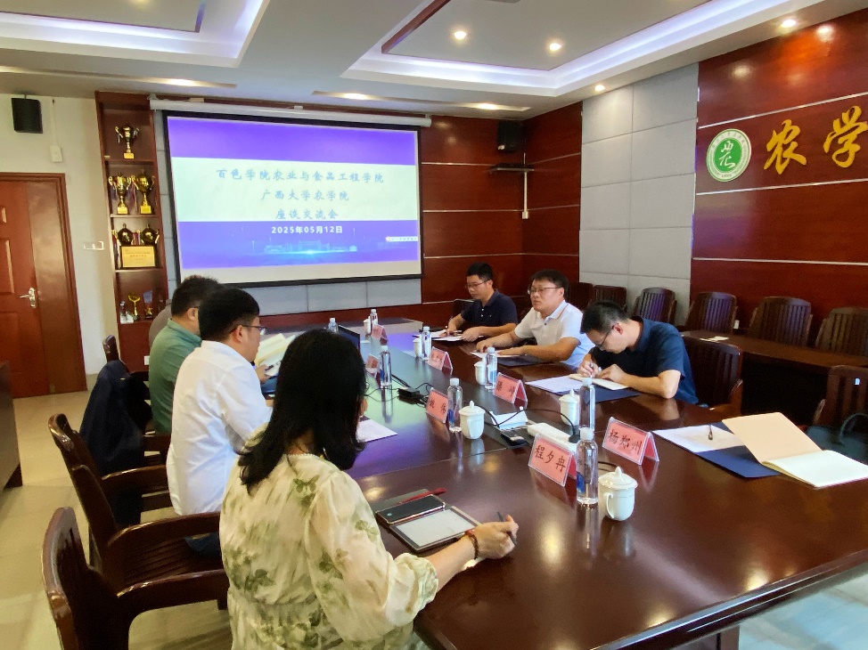 为加强校际合作,推动学科共建,百色学院农业与食品工程学院与威尼斯432888cam于5月12日在威尼斯432888cam149会议室联合举行了座谈交流会。此次交流会聚焦深化双方在农业科学领域的合作,共同探索新农科建设路径。