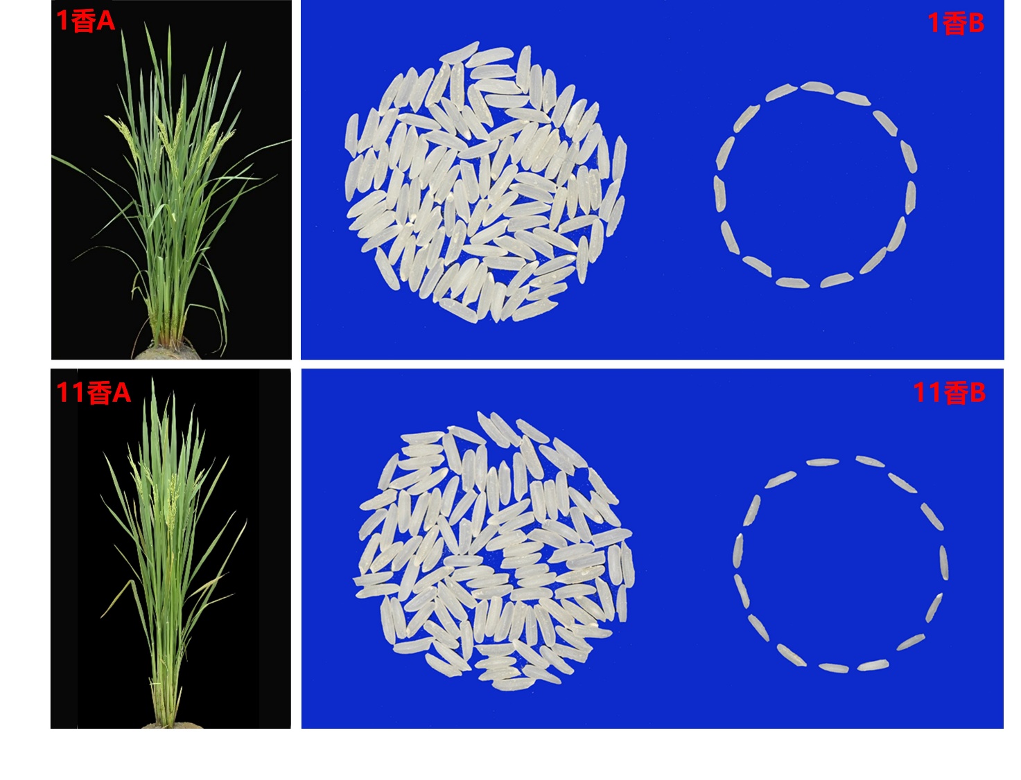 该团队自2013年起采用传统不育系回交转育技术,通过复杂的测交筛选和连续回交,成功将株型、抗倒、香味及优质、高产等优良性状完美结合。“1香A”和“11香A”的花粉不育性稳定,株型集散适中,茎秆粗壮,抗倒伏力强,柱头外露率高,有利于提高异交结实率,提高制种产量。米质检测报告显示,保持系 “1香B”和“11香B”稻米的食味值、胶稠度和直链淀粉含量等关键指标均达到NY/T 593-2021《食用稻品种品质》优质标准。“1香A”和“11香A”的配合力好,配组出的杂交水稻新品种米粒饱满、晶莹剔透,在蒸煮时香味扑鼻,瞬间勾起食欲,让每一顿饭都充满温馨。