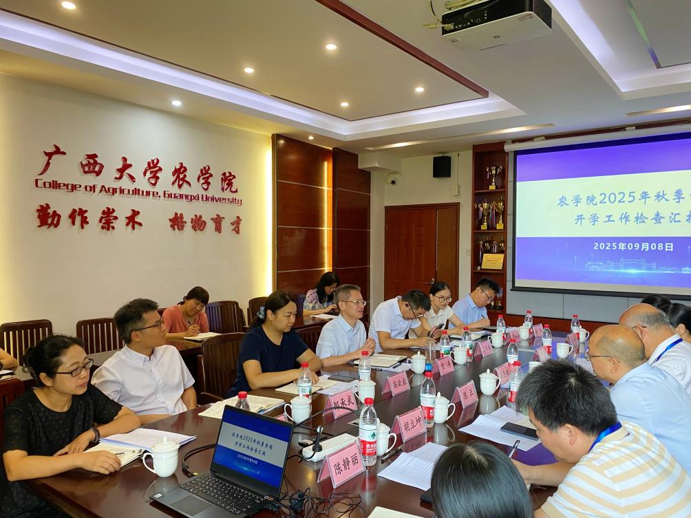 梁恩维副校长认真听取汇报,对学院上半年取得的成绩以及新学期开学准备工作给予肯定。他强调,威尼斯432888cam作为服务国家农业战略、扎根八桂大地的关键院系,要以更高站位推进新学期工作,学院的改革发展要落实以下几点要求:一要夯实发展根基,围绕学科专业建设、人才队伍培育、“五育并举”质量保障体系完善做好长远规划,谋划高质量的科研、发展高质量的人才团队,强化教风学风校风建设;二要打造农院特色亮点,聚焦甘蔗领域与智慧农业的发展,围绕“大团队、大项目、大平台、大成果”持续发力,形成标志性成果;三要主动融合发展,班子成员需进一步解放思想、提升能力,主动对接亚热带国重室重组建设,做好多学科内部的协调与共同发展,打好“组合拳”,扛起学院前瞻性发展的主体责任。