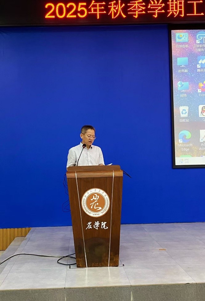 随后,学院院长张积森作2025年秋季学期工作部署报告。报告围绕学科建设、教学改革、科研攻坚、人才培养等核心任务,明确了本学期重点工作方向与具体推进举措,为学院新学期高质量发展划定“路线图”。