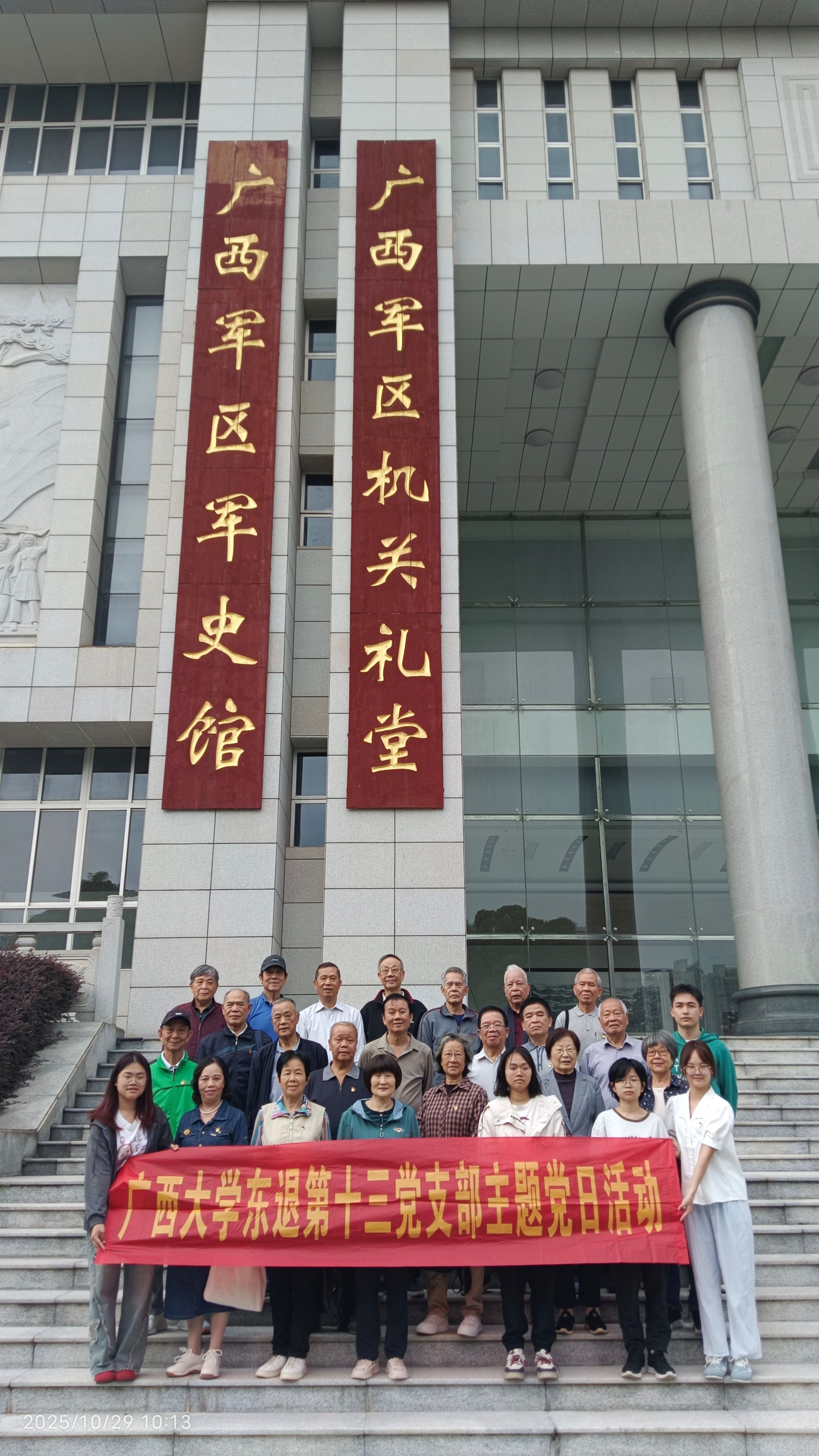 近日,农学本科生党支部前往广西军区军史馆,与学校东退第十三党支部联合开展以“致敬峥嵘岁月,坚守初心使命”为主题的党日活动。