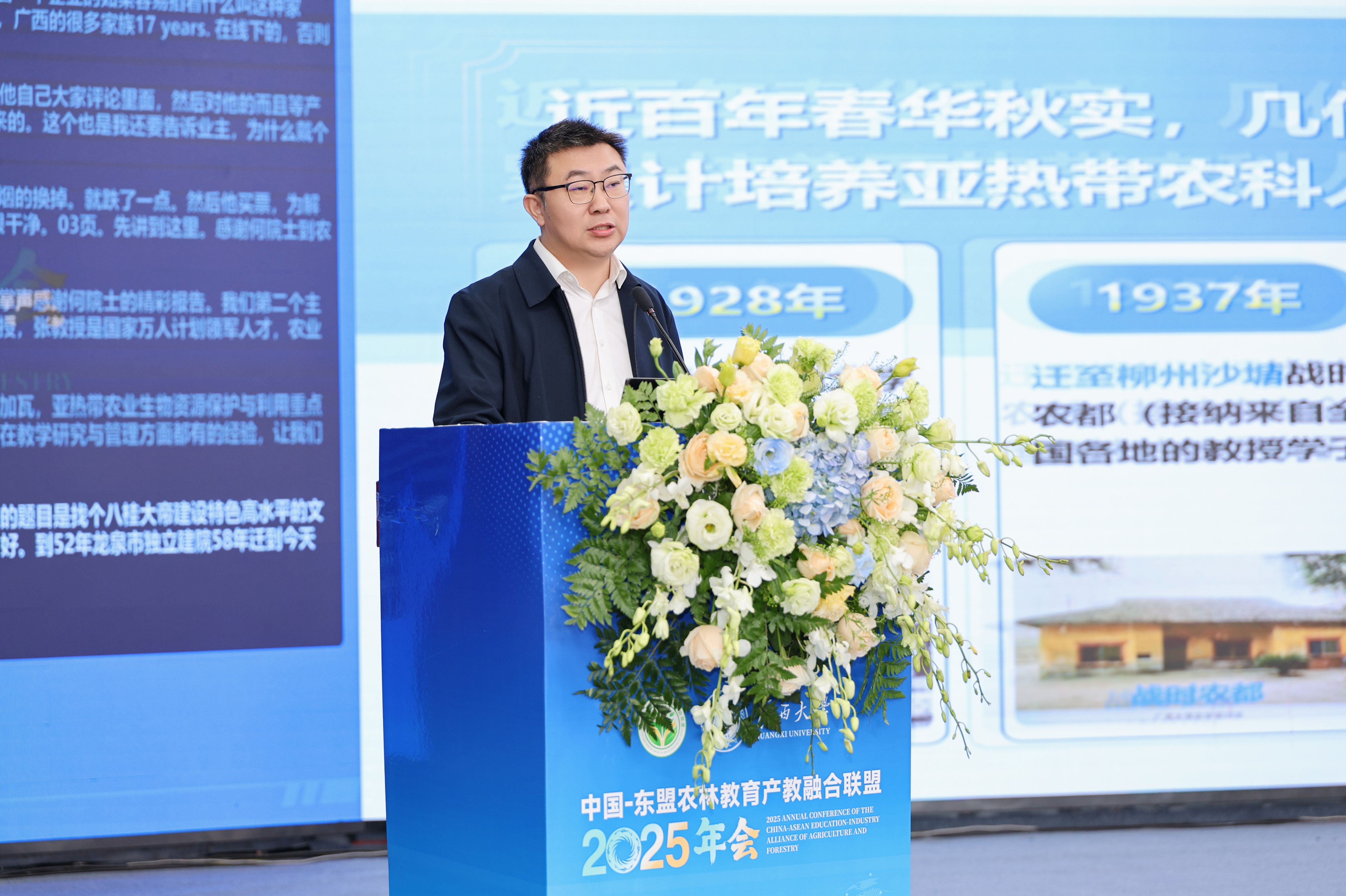 威尼斯432888cam院长张积森在会上作题为 “扎根八桂大地、推进面向东盟合作,建设亚热带特色高水平威尼斯432888cam” 的报告。他表示,威尼斯432888cam立足亚热带农林学科优势,长期深耕甘蔗、水稻、荔枝等特色产业研究,积累了丰富的技术成果与育人经验。面向东盟,学院将以联盟为重要平台,进一步深化与东盟国家高校、企业的产学研协同,通过联合培养农林专业人才、共建热带亚热带作物研究中心、共享智慧农业技术成果等方式,推动教育资源互融、科研攻关协同、产业发展共赢,让亚热带农业技术与人才培养模式更好服务东盟国家乡村振兴与农林产业升级,为区域农林事业高质量发展注入强劲动力。