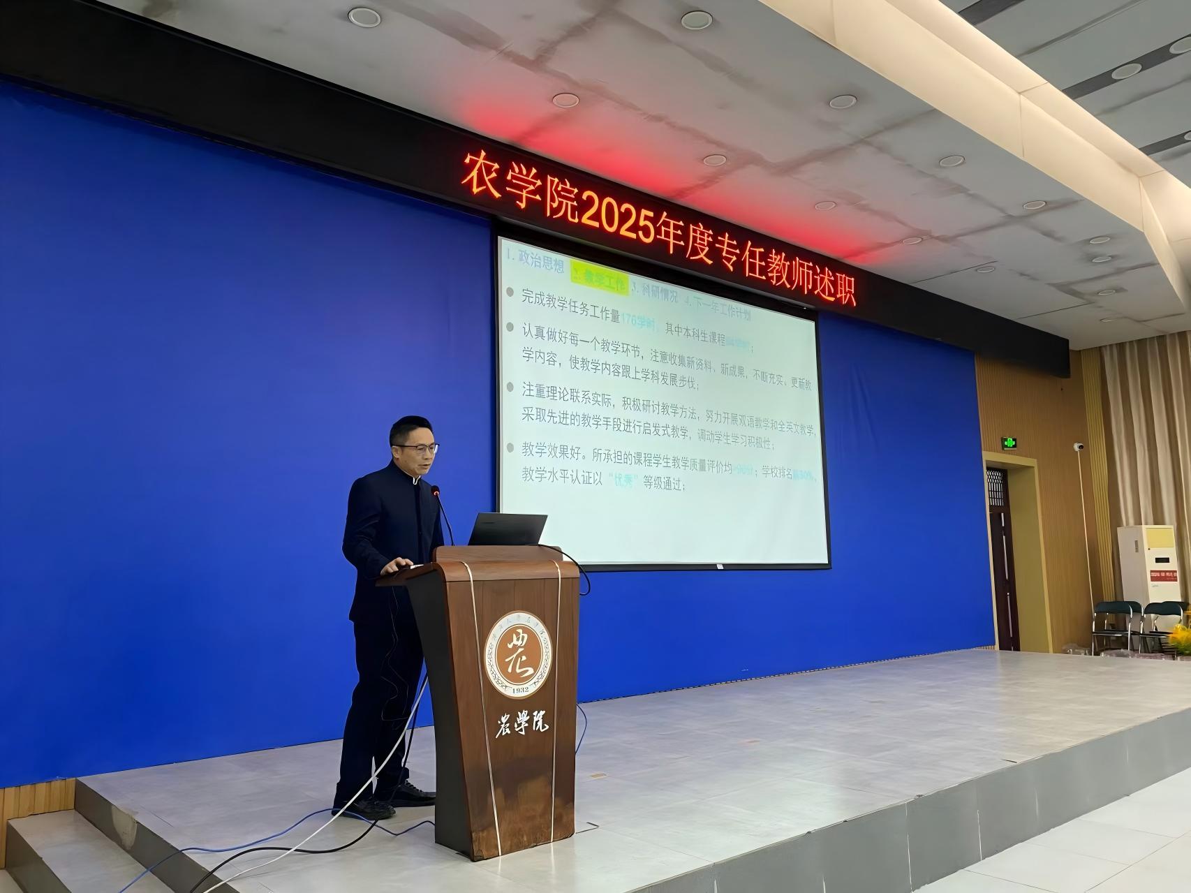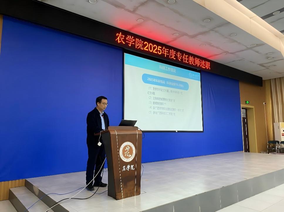 本次述职按照学校考核工作要求,聚焦师德师风、人才培养、科学研究、社会服务等核心职责。各专任教师提前精心准备PPT,围绕聘用合同履职情况,系统梳理2025年度工作业绩和亮点。汇报现场,专任教师结合自身工作实际,用数据说话、以实绩印证,全面总结工作成效:在教学领域,深耕新农科建设,推进课程思政与信息技术融合,斩获多项教学成果奖;在科研方面,聚焦亚热带农业特色,高水平论文与科研项目成果丰硕;在社会服务中,深入乡村振兴一线,以技术赋能产业发展,彰显农科学者担当。同时他们也客观分析工作不足,明确后续改进方向。
