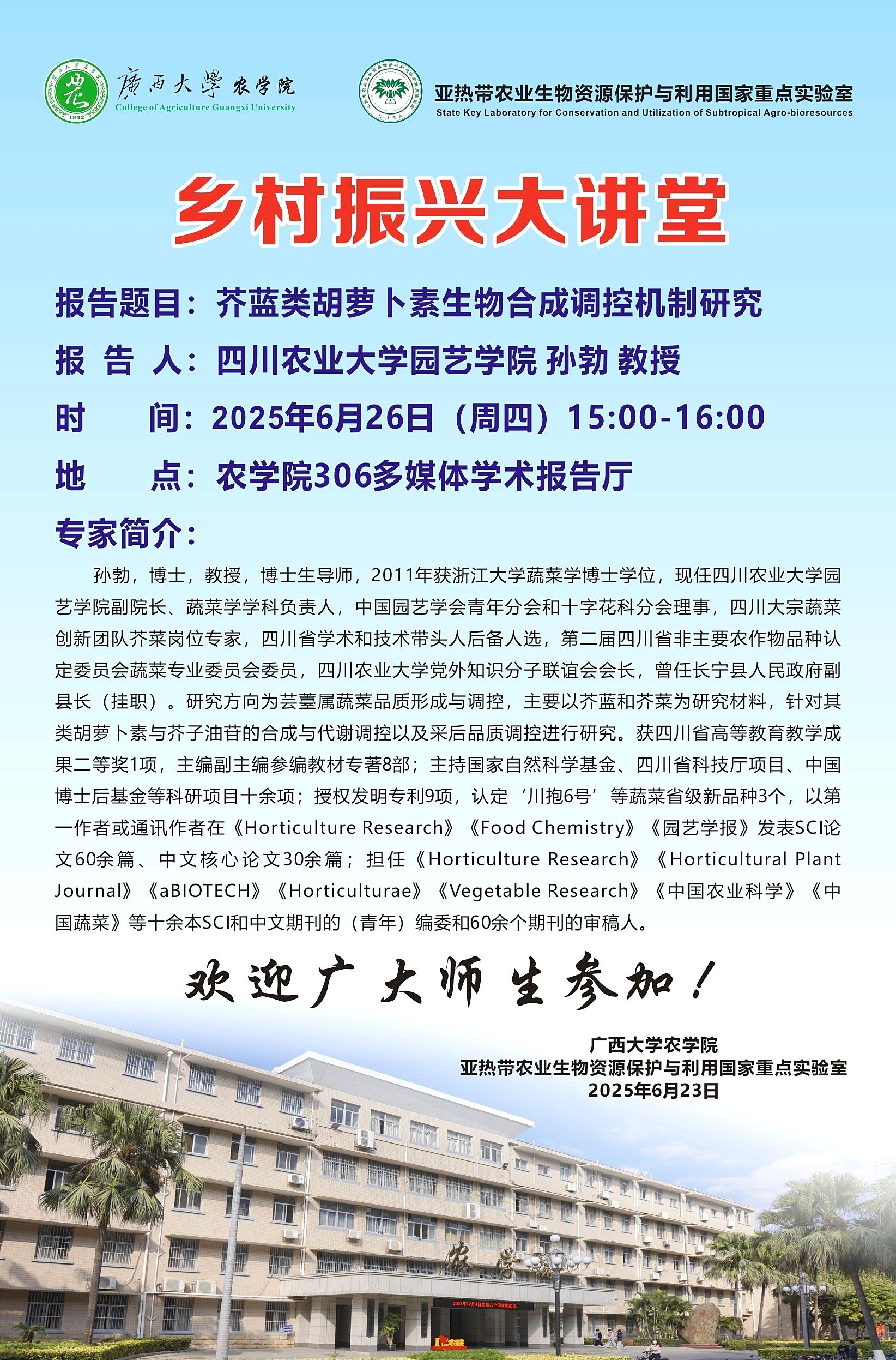 乡村振兴大讲堂-芥蓝类胡萝卜素生物合成调控机制研究报告人:四川农业大学园艺学院孙勃教授