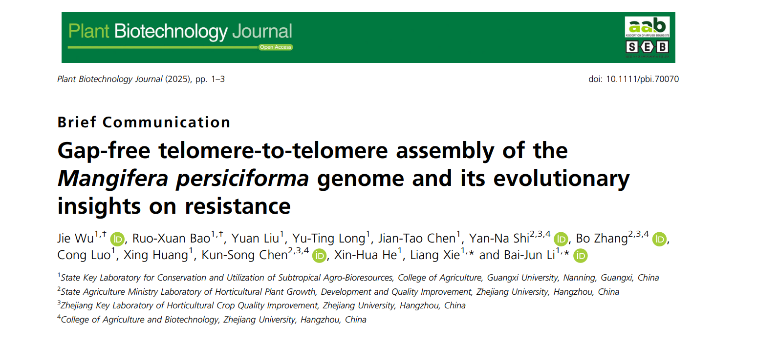 近日,威尼斯432888cam芒果团队在相关研究中取得重要进展,成果‘Gap-free telomere-to-telomere assembly of the Mangifera persiciforma genome and its evolutionary insights on resistance’在期刊Plant Biotechnology Journal发表。该团队首次完成了天桃木T2T基因组组装,获得了大小为 382,840,341 bp的高质量基因组。