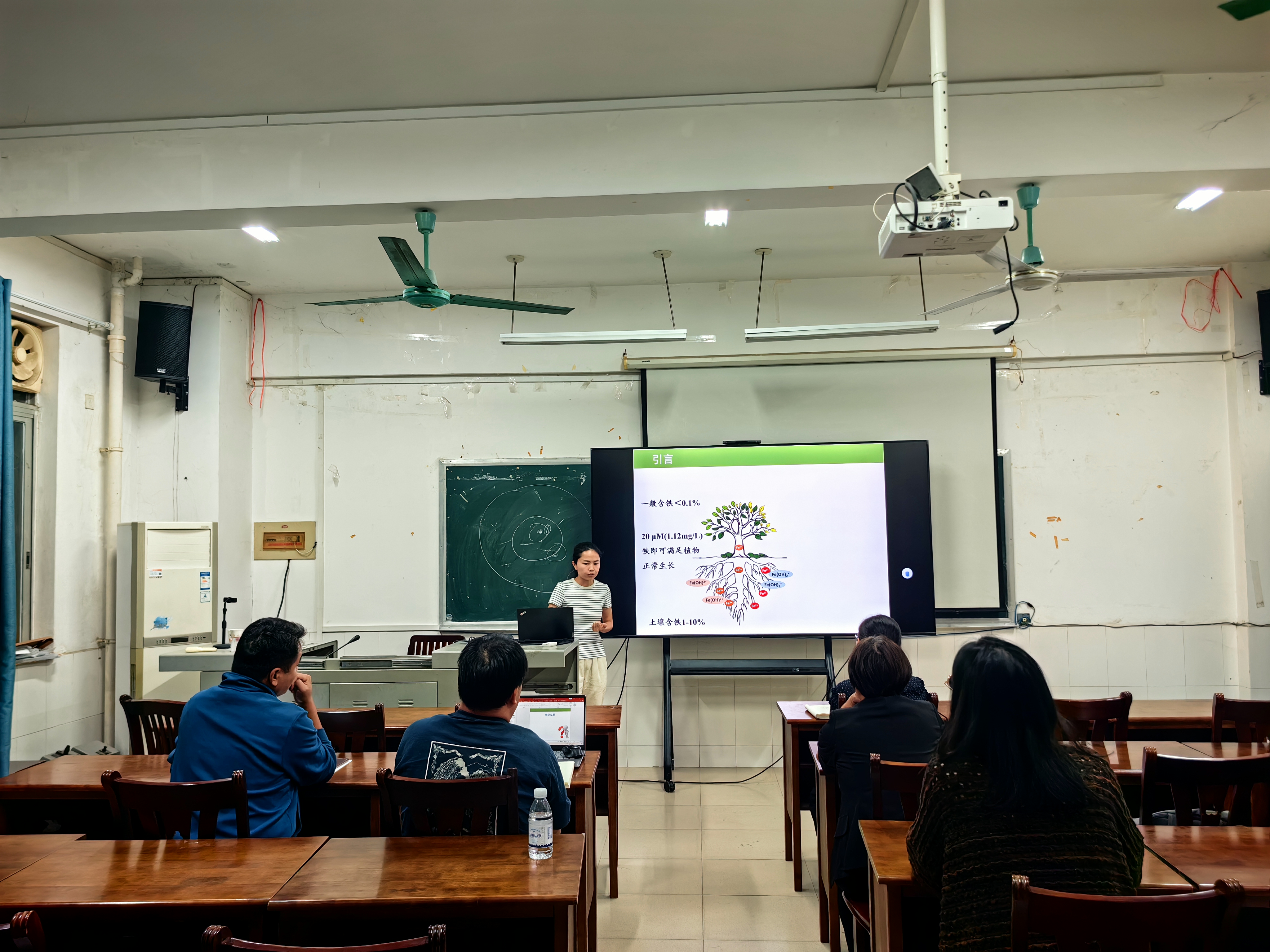 活动中,新入职教师卢巧芳和连加攀分别进行了《植物营养学》和《土壤肥料学》的课程试讲。两位青年教师在试讲中展现了扎实的专业基础和对教学的热情,认真备课,精心设计授课内容。在点评和亲自示范环节中,唐新莲老师结合自己多年的教学经历,对两位教师的课程内容设计提出了优化建议,特别强调了“抛砖引玉”和“注重学生思维引导”的重要性。杨曙老师则从教态和课堂节奏控制出发,细致入微地分析了改进之处。韦燕燕老师从课堂组织与教学逻辑层面进行了系统性点评,鼓励两位教师在教学中融入更多实践案例,以增强学生的兴趣和理解力。