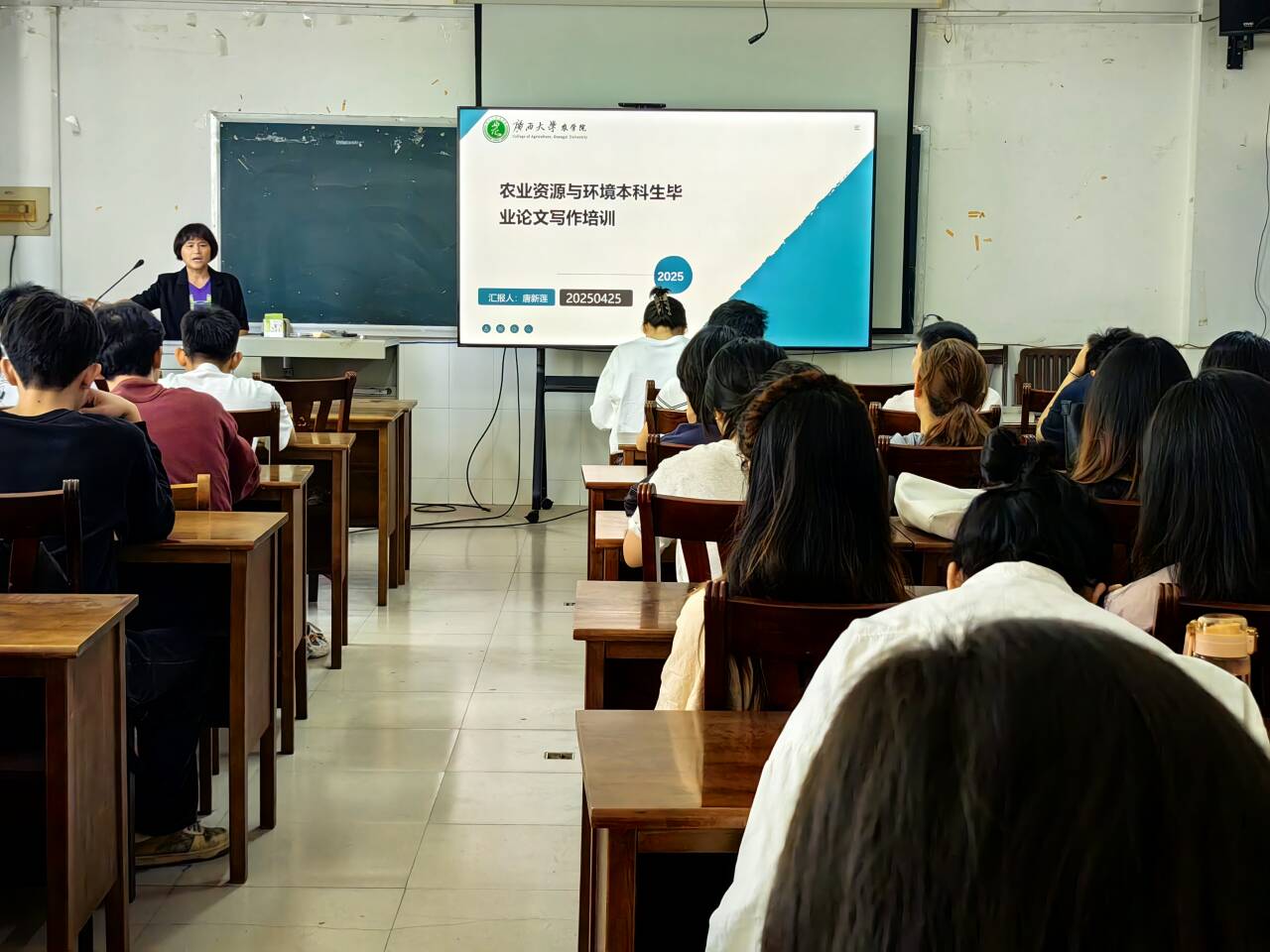 为进一步强化威尼斯官网本科毕业设计(论文)环节的教学质量,确保2025届本科生能够高质量地完成毕业设计(论文),根据学校、学院工作安排,威尼斯官网农业资源与环境科学系于2025年4月25日在土化楼212多媒体教室开展了“农业资源与环境科学本科生毕业论文写作培训”。