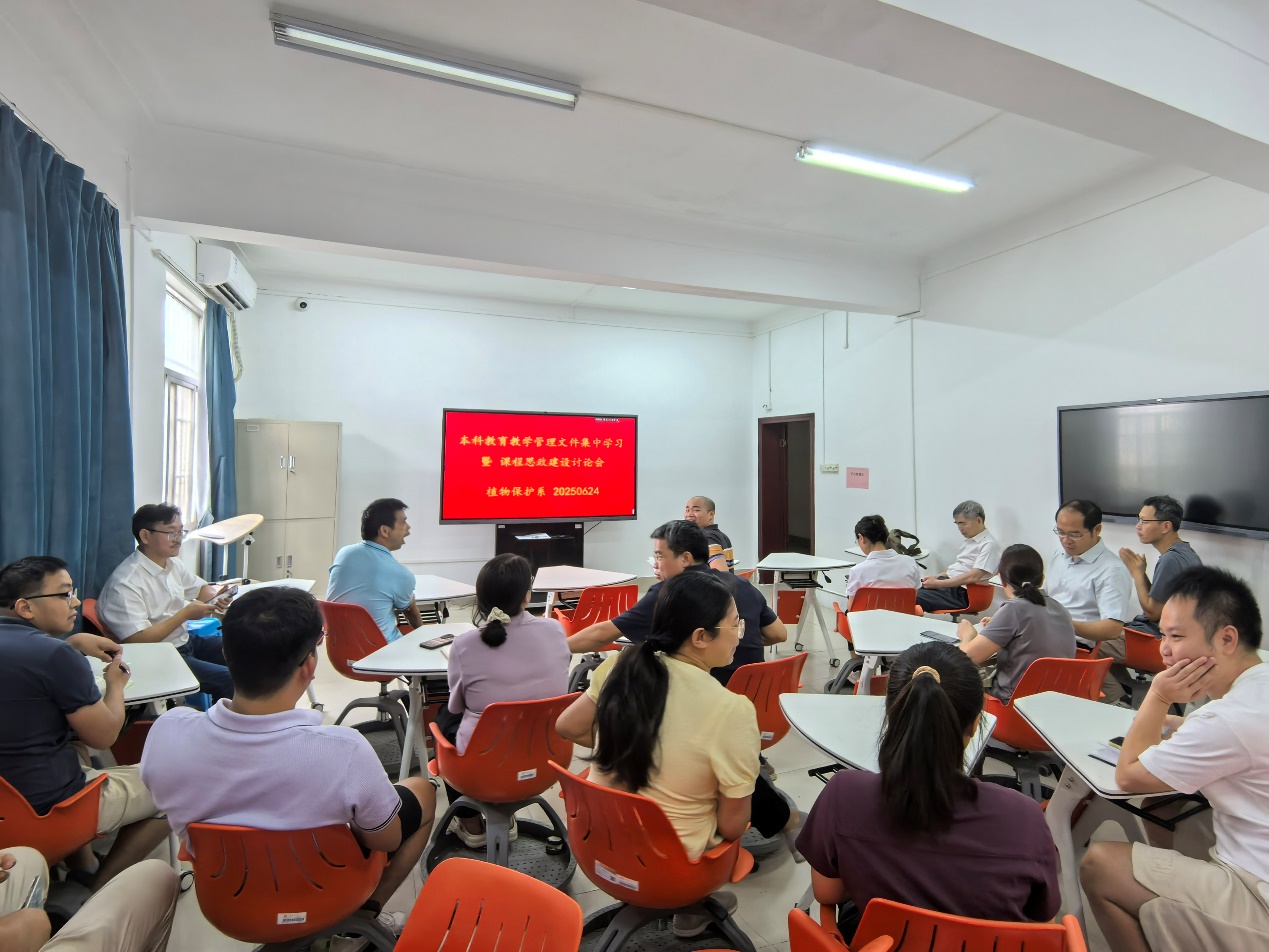 2025年6月24日,威尼斯官网植物保护系在学院336互动教室召开了本科教育教学管理文件集中学习会暨课程思政建设讨论会。本次会议由植物保护系副主任郑德洪副教授主持,植物保护系主任谭辉华教授,以及陈保善教授等植物保护系全体教师参加会议。